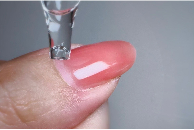 GRACEピールオフリムーバーは爪や爪周りにスポイトで垂らして使用しますので、爪回り全体の乾燥を防ぎながら簡単にオフができる理想的なリムーバーです。