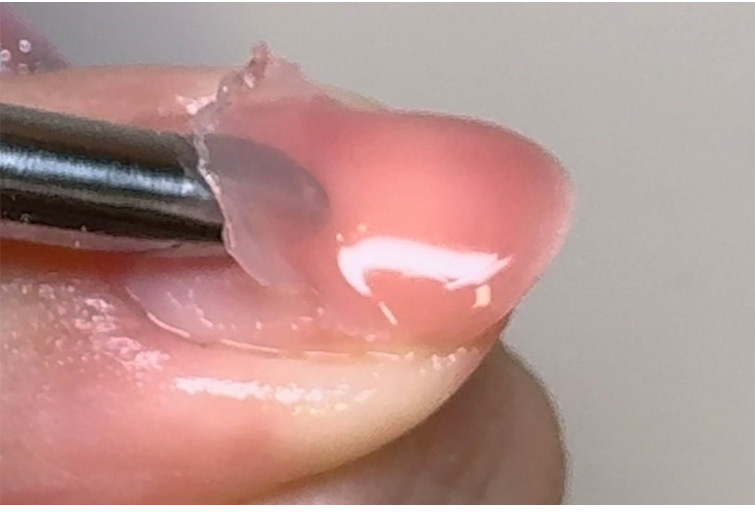 2.ウッドスティック、などで甘皮付近から優しく剥がします。