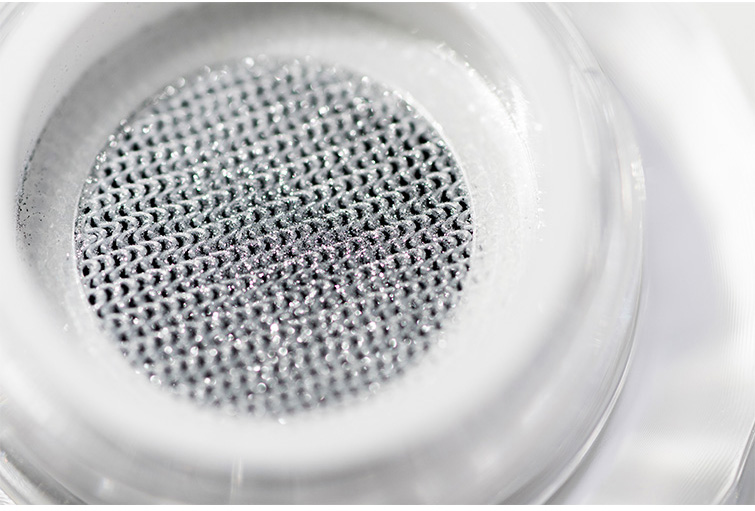 容器内部に伸縮性のある微細穴クッションネットを内蔵。