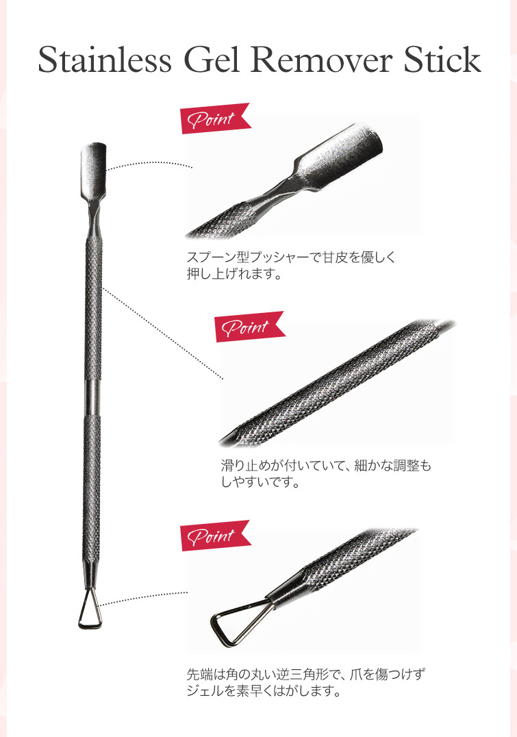 【ゆうパケット対象商品】ジェルオフジェルの除去がラクチン!爪を傷めずジェルネイル!ステンレスジェルリムーバースティック