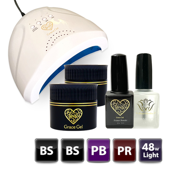 | セット内容 | グレースジェルベース 15ml×2 グレースジェル プライマーボンダー15ml×1 プレミアムアシッドレスプライマー15ml×1 48Wライト×1 |