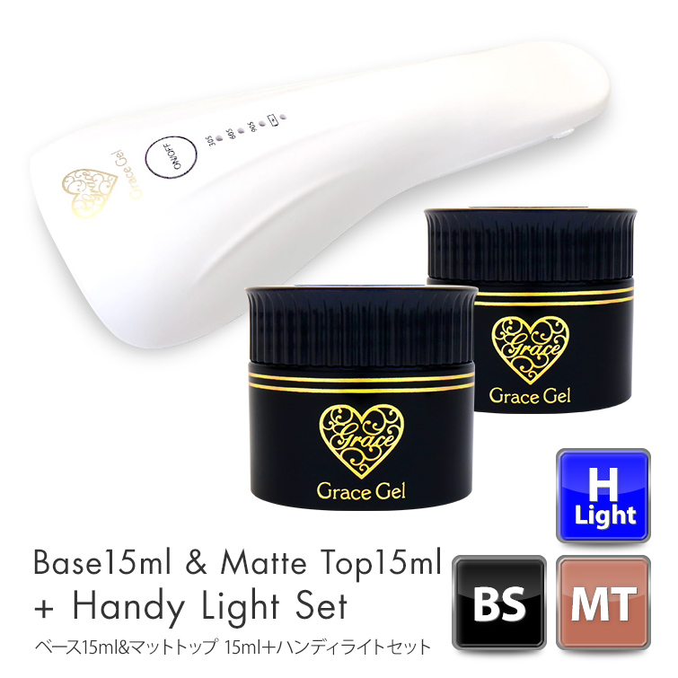 | セット内容 | グレースジェルベース 15ml×1 グレースジェルマットトップ 15ml×1 ハンディライト×1 |