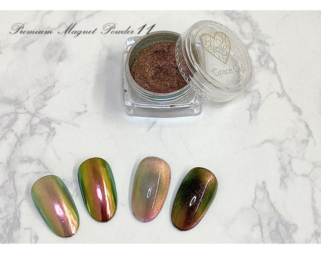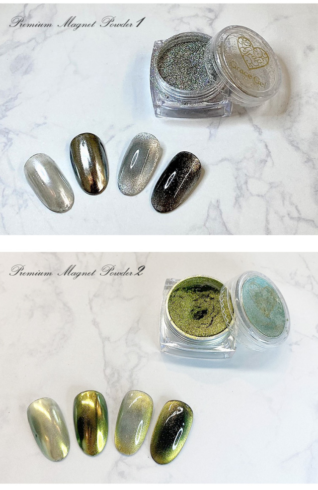 | 商品説明 | 使い方次第で『キャッツアイ』も『ミラー』もできる♪ 超万能!新感覚パウダー マグネットネイルがなくてもカラージェルに混ぜるだけでキャッツアイアートが可能♪ |
