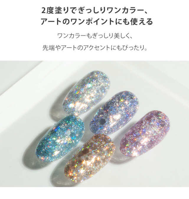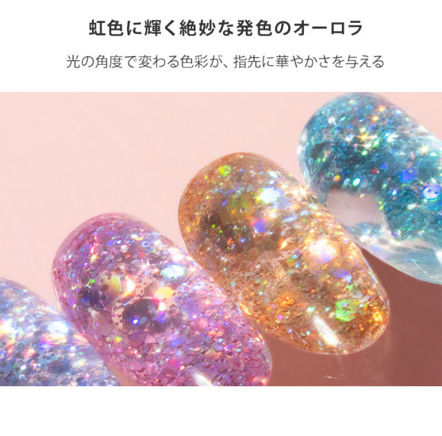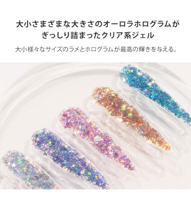 大小さまざまな大きさのオーロラホログラムが ぎっしり詰まったクリア系ジェル