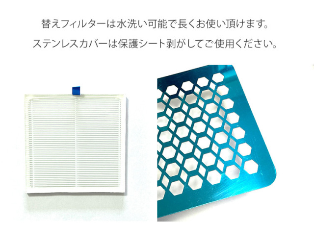 | 内容物 | ダストコレクター本体、アダプタ、集塵フィルター、フィルターシート25枚 ※付属のフィルターシートを使いますと、フィルターの掃除が簡単で、より長持ちします。 集塵フィルターとステンレスカバーの間に挟んでください。 |