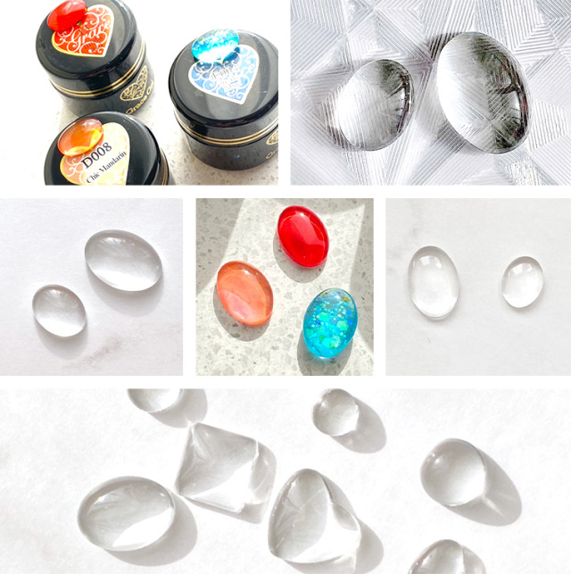 カラーチャート ジェルネイル 透明ガラスストーン平底 オーバル 50粒