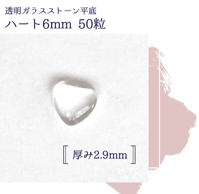 カラーチャート ジェルネイル 透明ガラスストーン平底 ハート 50粒