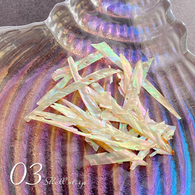 通常のシェルよりもパール感が強く、上品で高級感あふれるアートに最適なシェル。
