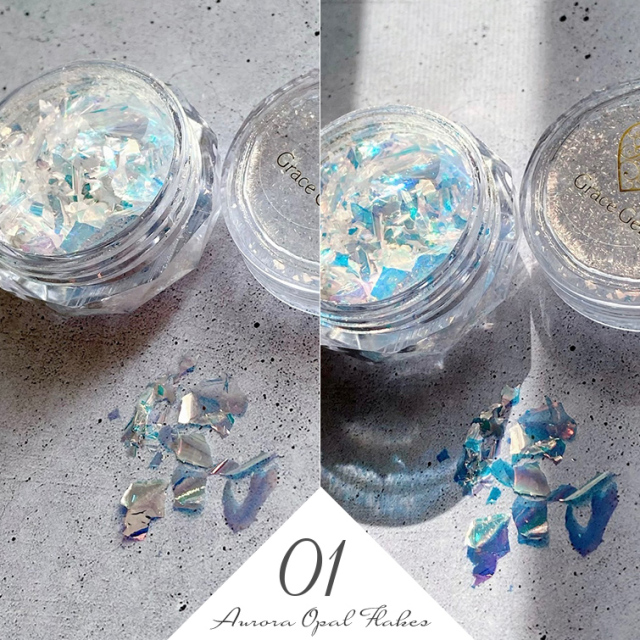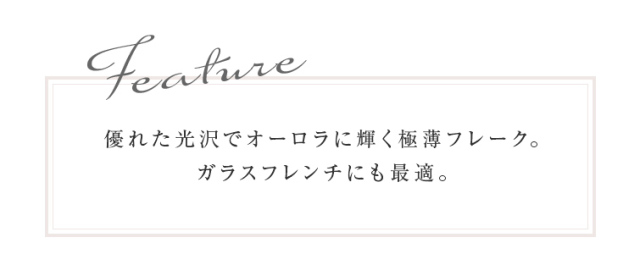 優れた光沢でオーロラに輝く極薄フレーク。ガラスフレンチにも最適。