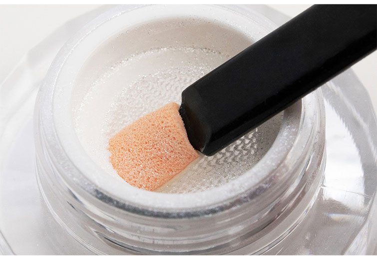 シリコンスティックを押し込んで擦るだけで、粒子が均一に絡みます。