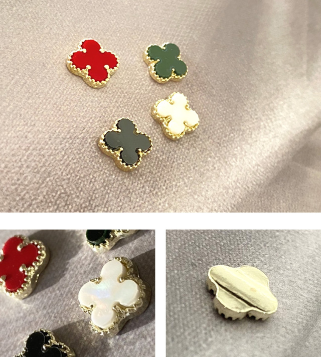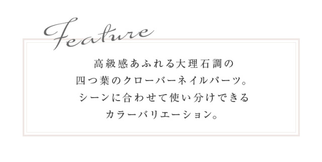 高級感あふれる大理石調の四つ葉のクローバーネイルパーツ。シーンに合わせて使い分けできるカラーバリエーション。